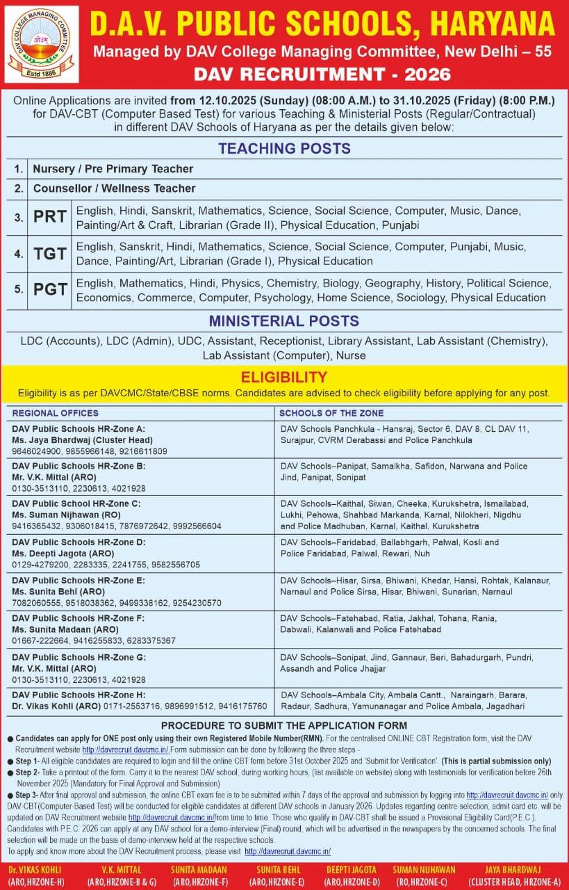 ADVERTISEMENT OF D.A.V RECRUITMENT 2026